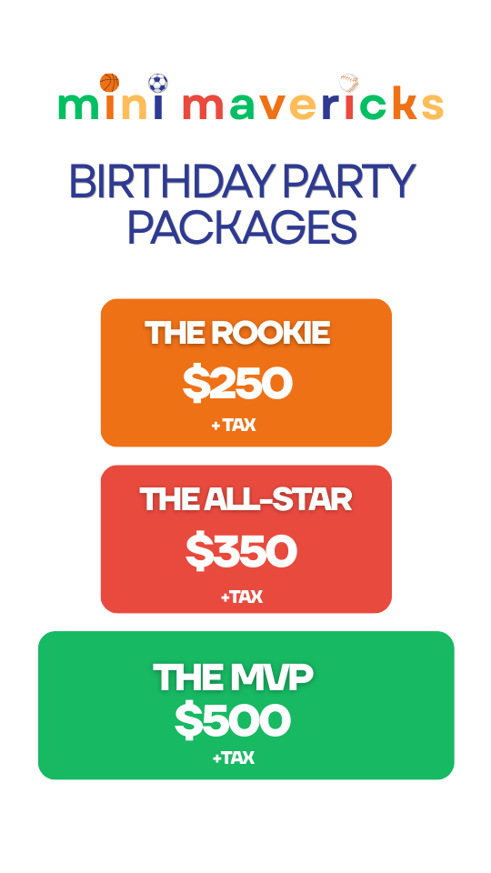 Make your child’s birthday a slam dunk! 🎉🏀 Celebrate with friends, games, and multi-sport fun at Mini Mavericks!